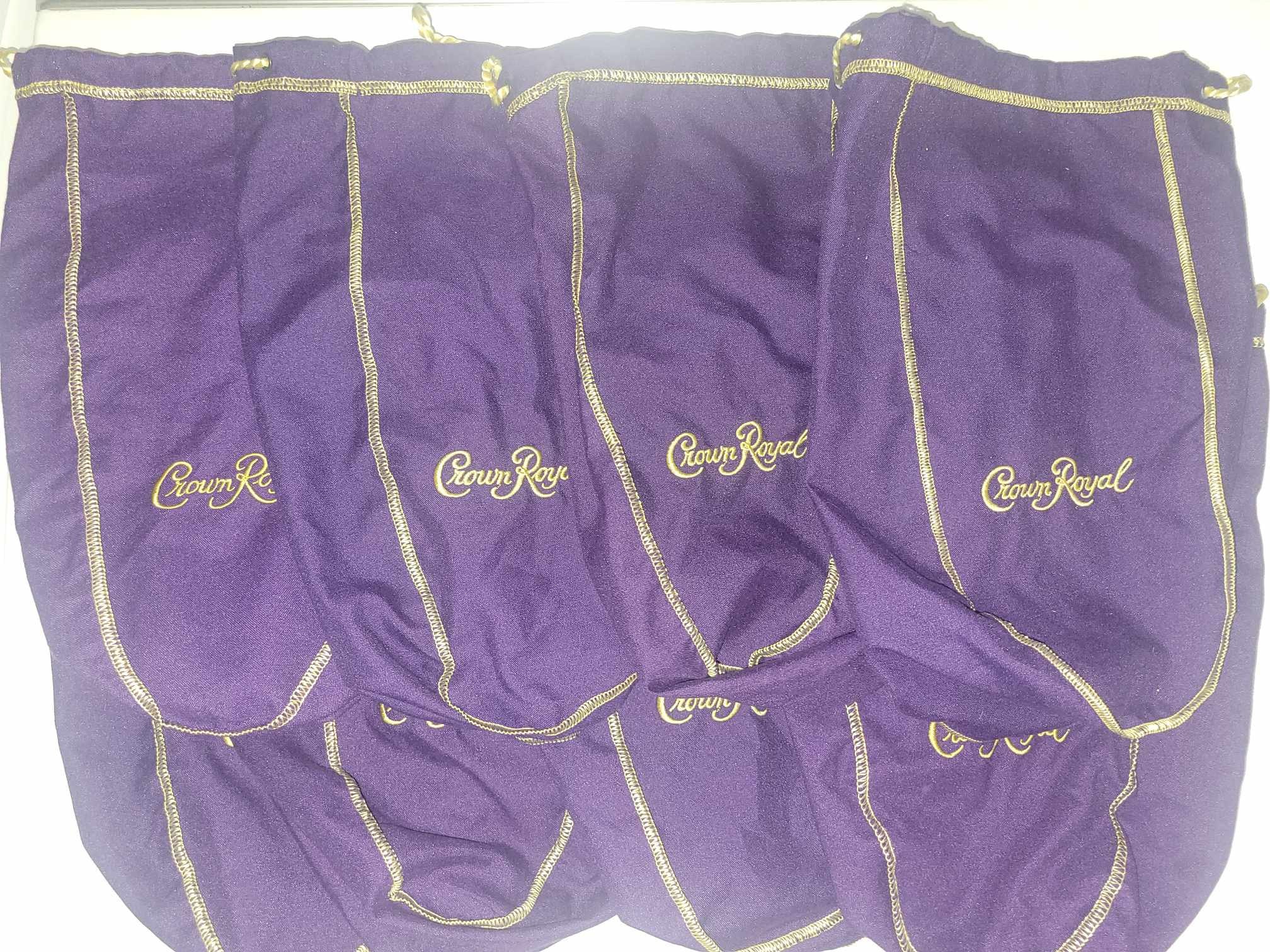 This listing is for Lot of Crown Royal 1.75 liter sized Purple Drawstring Bags as seen in the pictures. You choose the Quantity of bags: 2, 6, or 10. Approximately 12"-13"" in length. The bags are from a large quantity we received, and in good used condition. They do have wrinkles from storage. You will receive the exact items you see in the pictures. Please closely examine the photos for the best look possible!